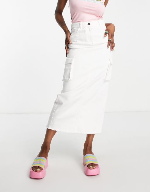 Product Item: Jupe en jean store blanche mi longue